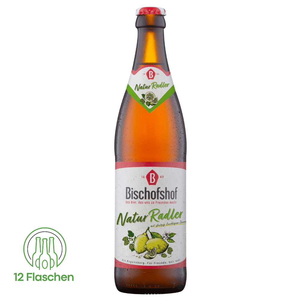 Egal ob mit Freunden unterwegs, nach getaner Arbeit oder ganz entspannt zur Erfrischung: Das Bischofshof NaturRadler ist immer eine perfekte Wahl! 50 % naturtrübe Zitronen-Limonade aus echtem Zitronensaft und 50% feinherbes Regensburger Hell vereinen sich zu einem einzigartigen, fruchtig-süßen Geschmackserlebnis. Hellgelb und naturtrüb, frisch, fruchtig, süß und spritzig – der perfekte Durstlöscher dahoam, am Donauufer, im Café oder beim Wirt. Erfrischend und super fruchtig, süß, aber nicht zu süß. Der extra hohe Fruchtsaft-Gehalt macht das Radler naturtrüb zur wahren Fruchtexplosion!